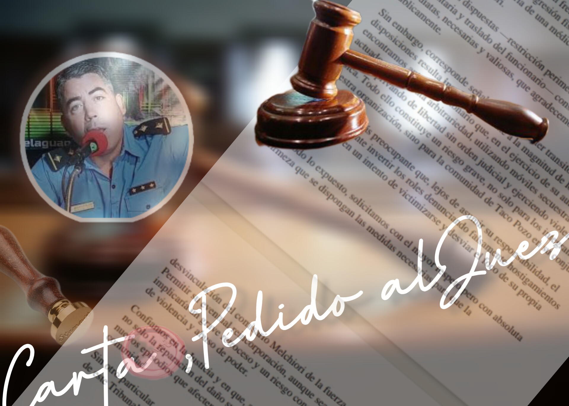 En mi carácter de presidenta de la Asociación Civil Todo por Todos, me dirijo a Ud. para expresar, en primer término, nuestro reconocimiento por la rápida y firme intervención frente a los graves hechos ocurridos en Taco Pozo, que incluyeron la agresión física a un voluntario y la detención absolutamente arbitraria de una médica de nuestro equipo, ejecutadas por el comisario Melchiori.